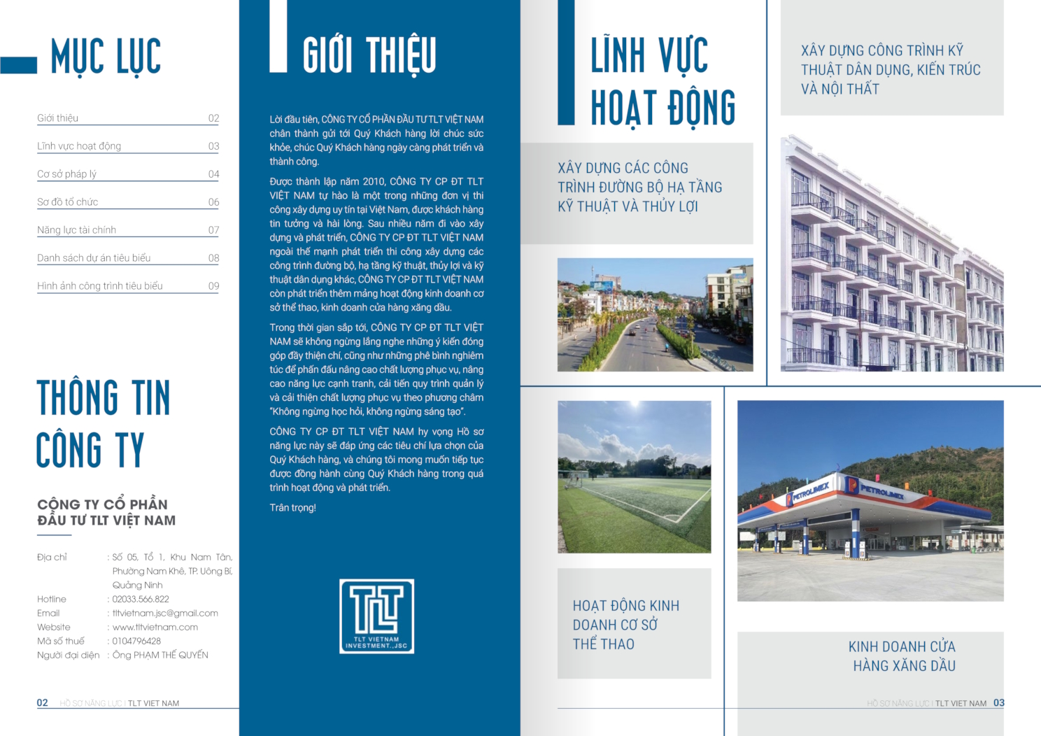 Công ty Cổ phần Đầu tư TLT Việt Nam là đơn vị chuyên thi công các công trình xây dựng dân dụng, giao thông đường bộ hạng II, cùng các dự án nhà công nghiệp, hạ tầng kỹ thuật, nông nghiệp & phát triển nông thôn (thủy lợi), đường dây và trạm biến áp hạng III.